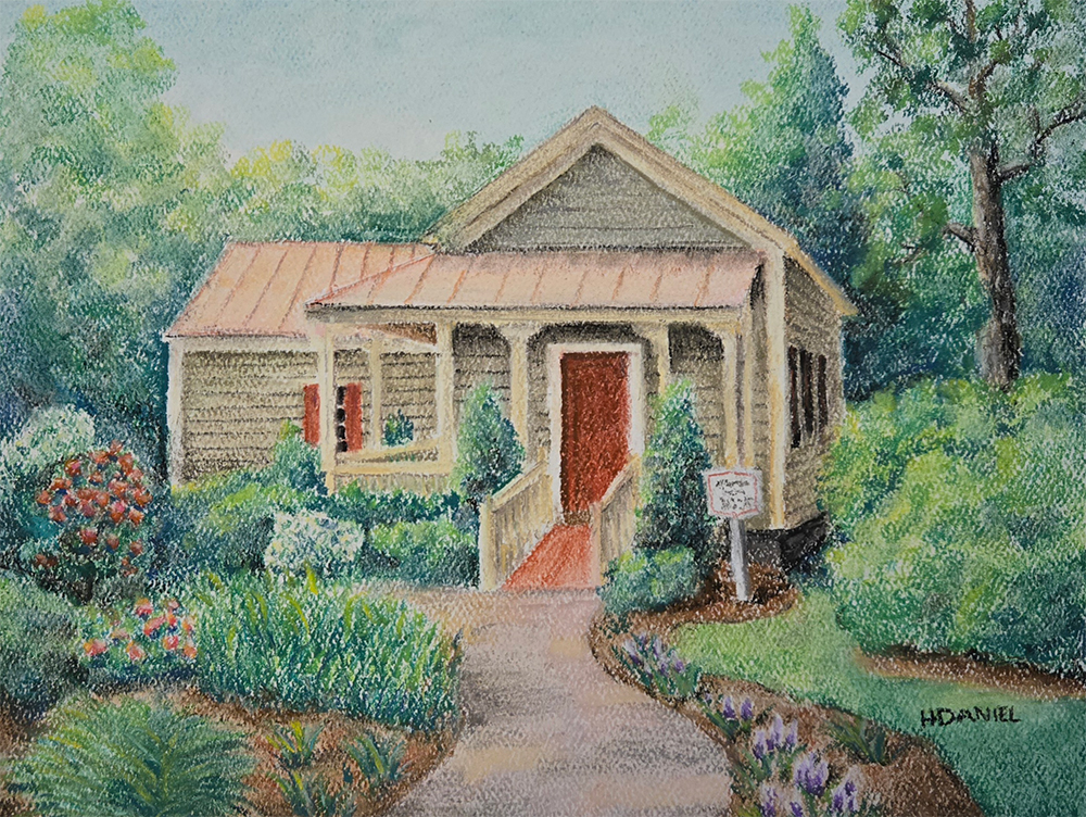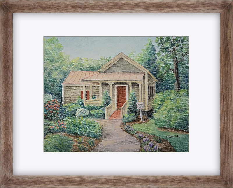 “Country Doctor Museum, Bailey, NC” is an 8.5″ x 10.5″ Americana drawing. It is from a reference photo that I took on a visit to the museum in 2025. This small, fascinating museum is the oldest museum in the United States dedicated to the history of America’s rural health care. It is well worth visiting! Framed in a brown, wooden frame with 11″x14″ white mat.